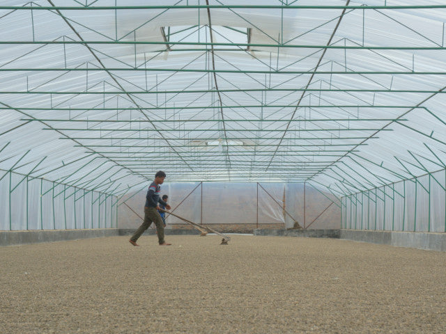 ムンテ・ドライミルリーダーであるチャールズ・ムンテ氏のもと、周囲130を超える農家から厳選されたGABAウエットパーチメント)が集められ、徹底した品質管理のもとでスマトラ式プロセスにより仕上げられます。